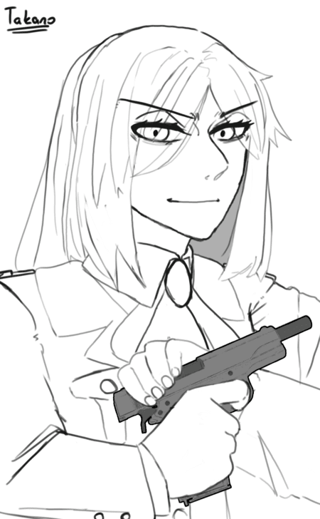 | Takano Miyo | To be honest, I have nothing to say about her, her sketch simply looks amazing, especially the M1911 pistol which I used blender to render. |