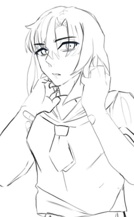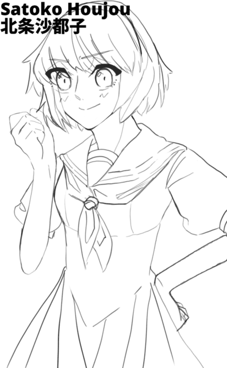 2022/08/11 - Drawing Kuraudo Ooishi was.. quite annoying. Drawing his body was easier than I thought, but I had all sorts of issues while drawing his face, so I had to look at many reference images of Ooishi and drawings with similar head shapes to get the right proportions. With that being out of the way, Houjou Satoshi is the last character I have to sketch before the line-art process begins!