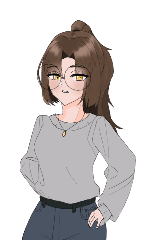 Maike’s character was inspired by the idea of a hard-working, cold, yet caring for his friends. Hence the reason why her clothing and overall design are kept quite tame and simple.